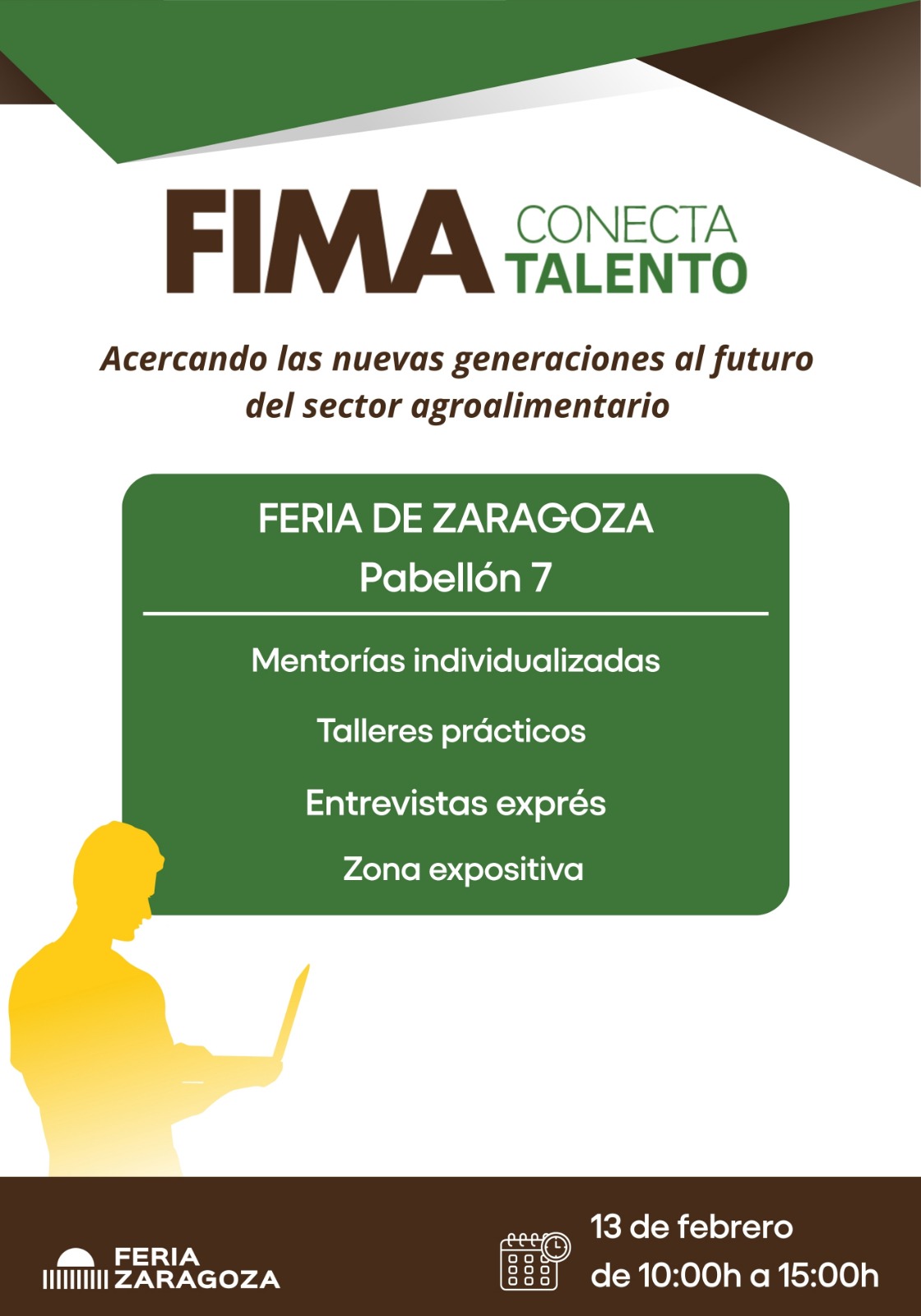 Ese mismo viernes, el Pabellón 7 acogerá FIMA Conecta Talento, una jornada impulsada por Feria de Zaragoza que busca acercar el talento joven a la realidad empresarial del sector. El programa incluirá mentorías personalizadas, talleres prácticos y entrevistas exprés, diseñadas para favorecer el contacto directo entre estudiantes, profesionales y empresas.