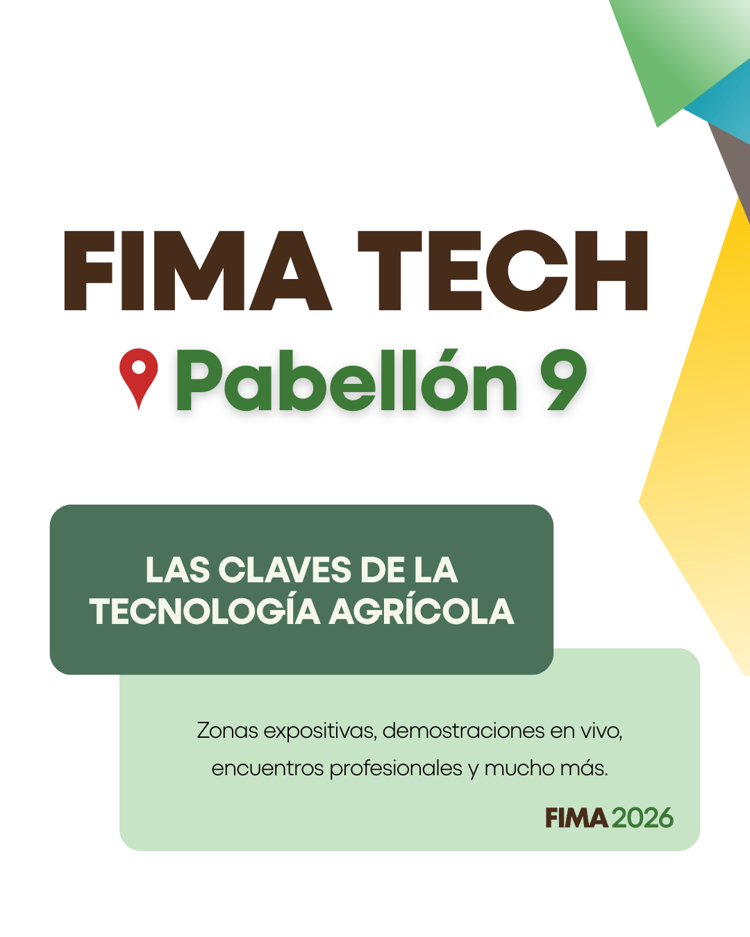 FIMA Tech (Pabellón 9) es el nuevo espacio de FIMA 2026 creado para impulsar la tecnología y la digitalización del sector agrícola. Un espacio en el que innovación, tecnología y negocio convergen para mostrar cómo la robótica, la inteligencia artificial, el big data, el Internet de las Cosas (IoT) o la agricultura de precisión están transformando el futuro del campo.